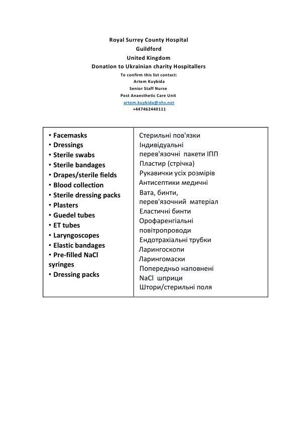 We have recently purchased vital medical supplies, as well as picked up several boxes packed with medical resources generously donated by Royal Surrey County Hospital. Now the supplies are being prepared for transportation to Ukrainian volunteers from the Hospitallers team.